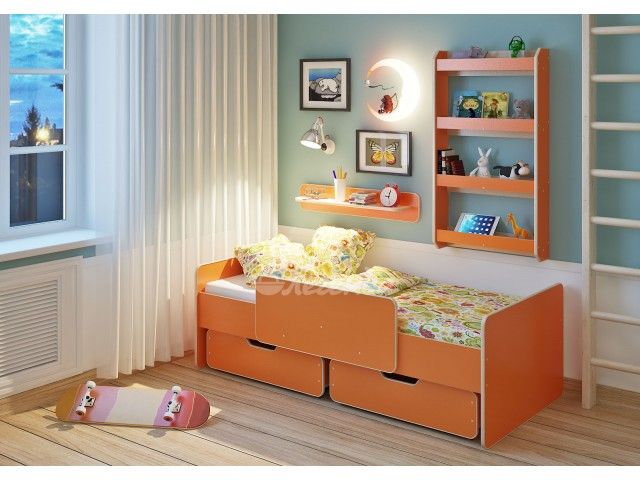 Детская кровать от 3 лет Легенда 14.1 с полками оранж